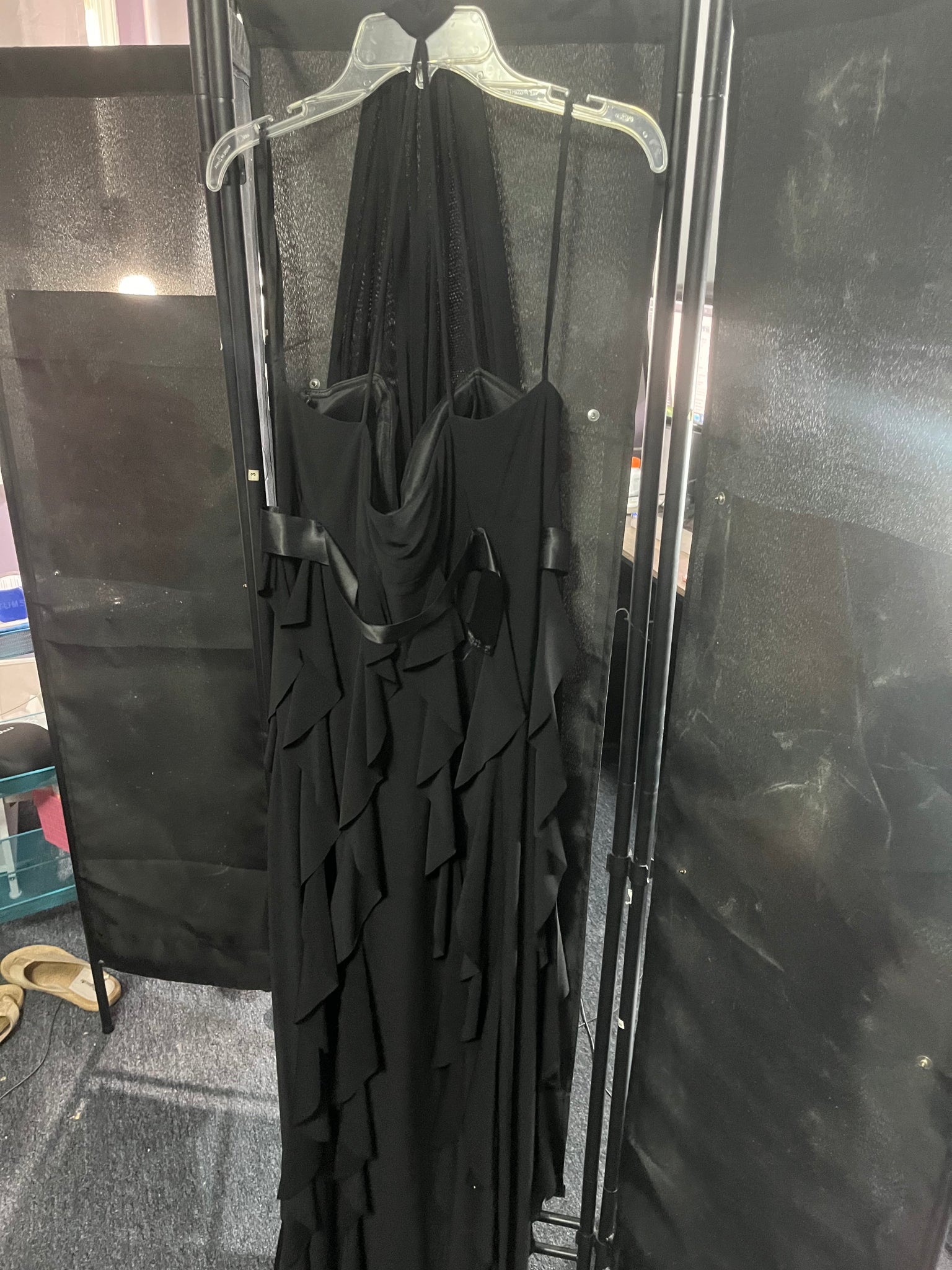 Make a statement with this Elegant Black Ruffle Evening Gown, designed to exude grace, glamour, and timeless elegance. Its flowing ruffles and classic black hue create a dramatic yet refined look, ideal for formal events, galas, or special occasions.